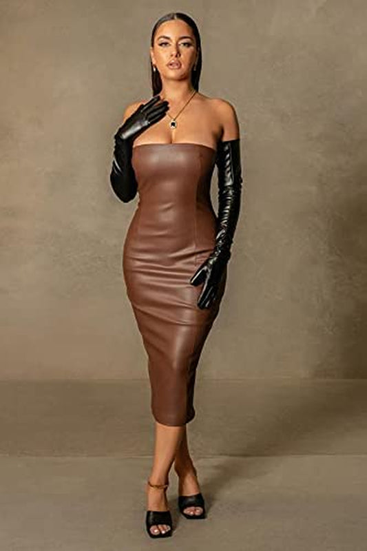 Women Strapless Tube Top Midi Dress off Shoulder Bodycon Party Dress